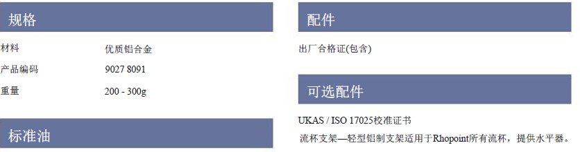 由優(yōu)質(zhì)鋁合金杯身和不銹鋼流嘴制成,Rhopoint PAINTLAB +流杯適用于UKAS /ISO 17025認證標準油且符合測量規(guī)格。